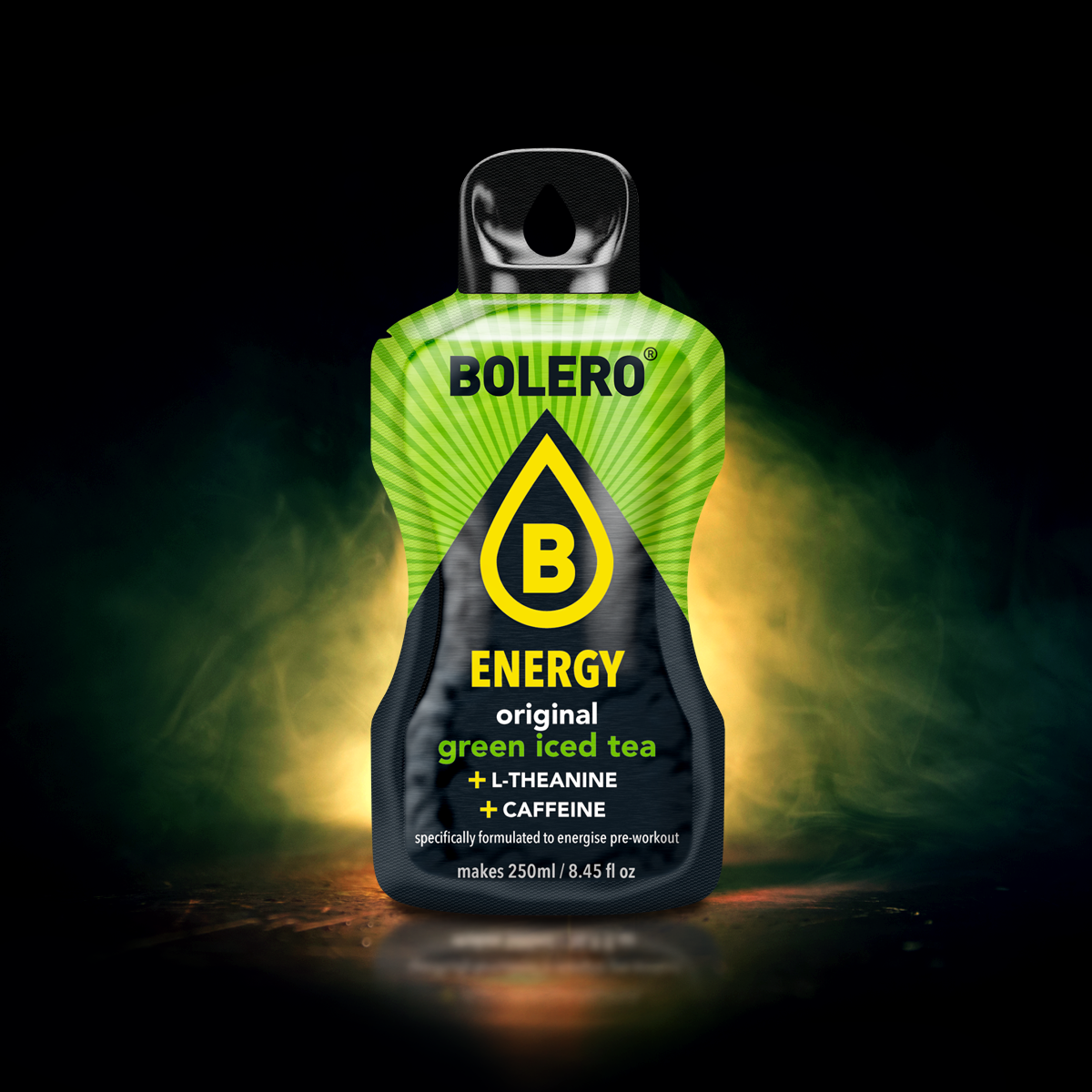 Bolero ENERGY Original Green Iced Tea, mit L-Theanin und Koffein, ist der perfekte Durstlöscher vor dem Training. Dieses zuckerfreie Energiegetränk sorgt für einen subtilen und langanhaltenden Energieschub, perfekt für jedes Training. Ein Beutel reicht für 250 ml.